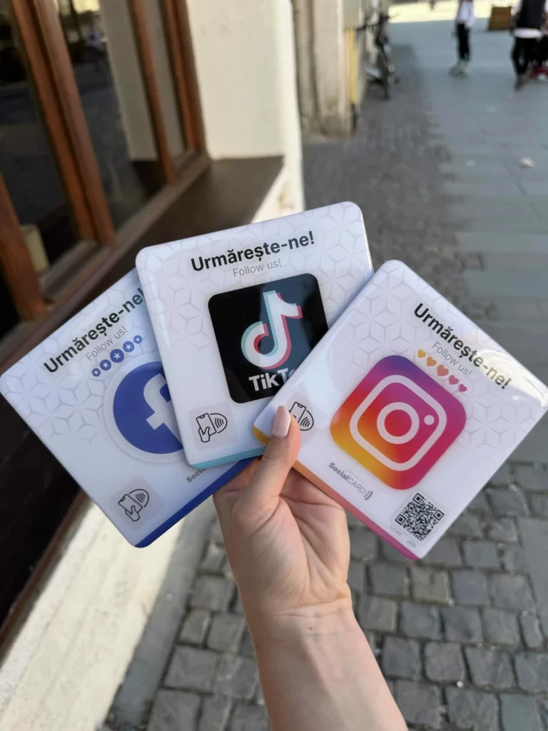 Mai multe companii vând carduri de colectare a evaluărilor Google. SocialCard se diferențiază prin faptul că funcționează fără aplicație, este livrat activat direct la tine și include gratuit un software accesibil din browser pentru urmărirea numărului de scanări. În plus, pe partea din spate a cardului găsești un cod QR pe care îl poți scana cu camera telefonului pentru a ajunge și mai rapid la pagina de evaluare. De asemenea, putem realiza grafică și text personalizat pe card.